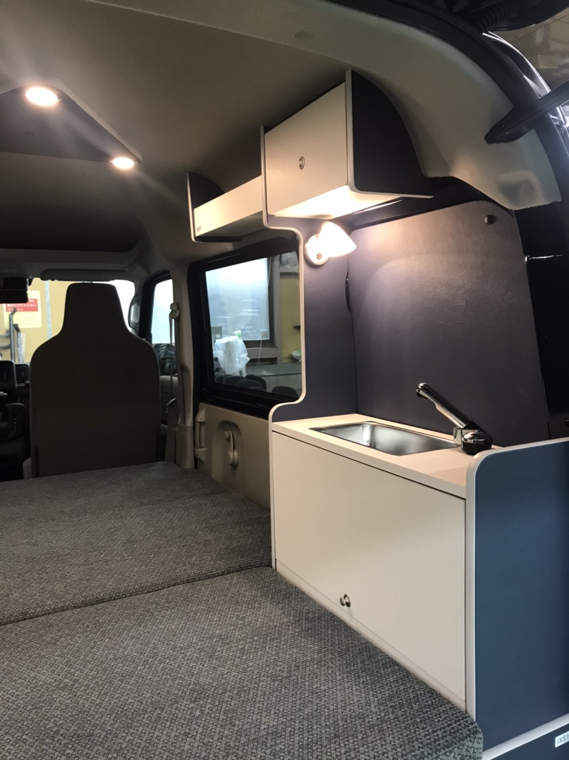 室内シンク、サブバッテリーシステム(85A)、収納などを用意