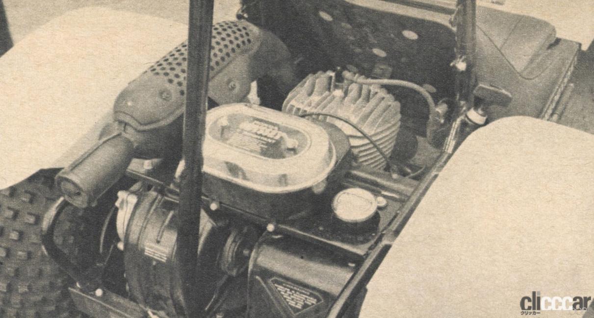 ゴーカート同様、エンジン始動はひもをひっぱってブルン! タイヤ内圧は、フロントが0.35kg/cm2、リヤが0.21kg/cm2。あえて極度なまでに低くする内圧が、砂地では大きな武器になる。それにしても大丈夫かなと思うほど低いね!