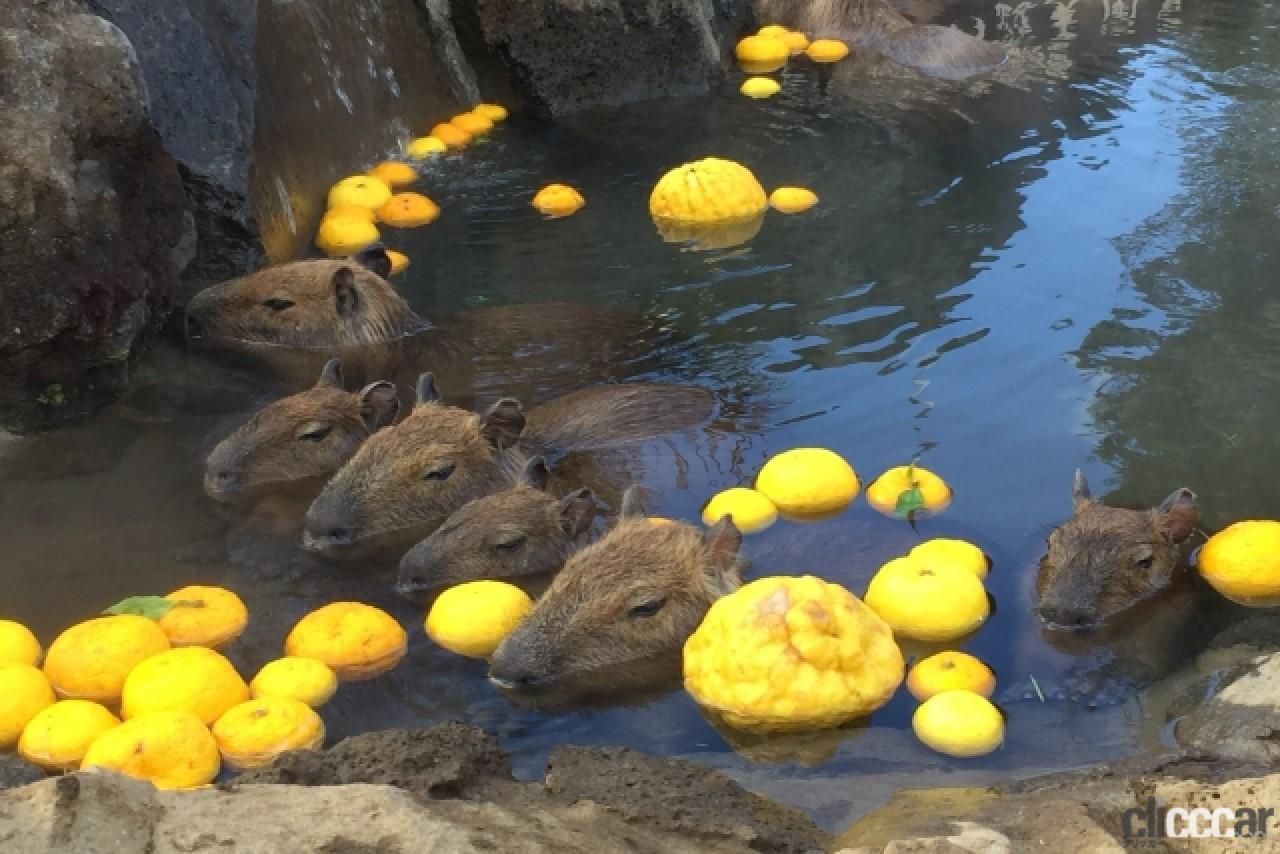 柚子湯に入っているカピバラ