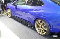 出展されたVBH型WRX S4のデモカーには、同社のスポーツパーツブランド「アグレス」のボディサポートシリーズやカーボンエンブレムリングなど、人気のアイテムを多数装備していますが、今後発売を視野に入れた開発中のアイテムも数多く装着されていました。