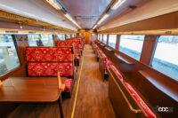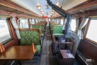 「たんちょうカー」の客室は釧路湿原側にカウンター席を設置。反対側は大型テーブルを設置したボックス席で、こちらは高床化して眺望を良くしています。