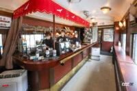2号車は「ストーブカー(カフェカー)」。この車両は旧型客車のスハ43系スハシ44形で、レトロな外観が魅力です。