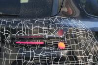 注目は、フロントドアに貼られた「Hybrid Test Vehicle」のステッカーで、その下になるパワートレインを示唆しています。
