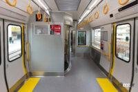 そのほか、ラッシュ時の乗降をスムーズにするため、出入口付近のスペースを拡大。拡大部分のクロスシート背面には補助椅子を設置しました。