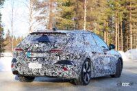 まだまだ雪が残るスウェーデン北部で捉えた次世代型「B10」プロトタイプは、ヘッドライトとテールライトだけでなく、ボディパネルすべてが量産コンポーネントです。またボディをローダウンしており、リアエンドには四角いデュアルエキゾーストパイプがインストールされていることからも「S-Line」と思われます。