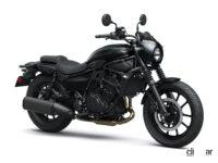 新型は、エンジンに398cc・並列2気筒を採用した普通二輪モデルとして登場。フルカウルスポーツの「ニンジャ400」やネイキッドの「Z400」と同系のエンジンは、最高出力48ps/10000rpm、最大トルク3.8kgf・m/8000rpmを発揮し、低速域での豊かなトルク特性を持たせたことで、良好なコントロール性を実現するといいます。
