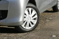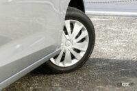 155/65R14タイヤの空気圧は前後とも2.4kg/cm2で、燃費競争をするようになる前は高め、いまでは高いと思わなくなった数字です。いまどき乗り味がタイヤ圧に左右されない乗り味のクルマが増えている中で、eKワゴンは荒れたアスファルト面や、補修跡などを越えるシチュエーションでは、やや突き上げ感がいなしきれていない感触がありました。