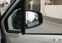 振り向いての目視が原則ではありますが、どうせ降車後のドアロック時まで電源が来ているなら、ドア閉で一気にたたむのではなく、運転席側だけでもドア開度に応じてミラーを少しずつ格納側に動かし、常に後方を写す角度に維持するロジックを組み込めば、ずいぶん利便性は上がると思うのです。