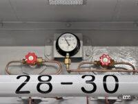 県内で製造された水素は、水素ボンベを搭載した水素トレーラーによって、住友ゴム工業白河工場へと運ばれてきます。水素トレーラーからは、これまた専用の水素受け入れ施設において、減圧されながらボイラーへ水素が供給がされます。つまり、白河工場に水素貯蔵タンクのようなものはなく、トレーラーがそのまま水素貯蔵場所となるわけです。