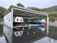 また、水素ボイラーによって製造するタイヤ「FALKEN AZENIS FK520」生産に必要とされるそれ以外の電力量は、工場敷地内の駐車場の屋根一面に貼られた太陽光発電パネルによって賄われているそうです。