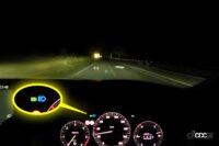 暗闇を淡々と走っているときに横をクルマが通り過ぎると即座にロー寄りに落とす。はるか先のカーブから対向車光が見え隠れし始めればすぐさまロー気味に・・・その間も青いハイビーム灯は点きっぱなしなので、ロー以上ハイ未満の光で正しい配光を行っていることがわかるというものです。