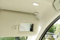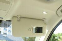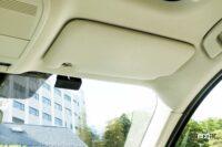 サンバイザーはごくオーソドックスな造り、サイズで、カードホルダーが併設されたふた付ミラーがついています。お色直しが暗がりでもできるよう、天井には専用ランプが。これはふたを開けると点灯し、点灯状態(開けたまま)でもバイザーを格納すれば消えます。