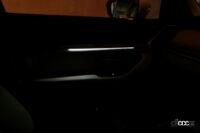 CX-60は車内照明が豊富です。ことラゲッジルームランプは荷室右内壁ばかりかバックドア内張り左下側にも設置。バックドア側ランプは立つひとの影になって意味がないだろうと思っていたのですが、設置場所がいいのか、意外と有用でした。