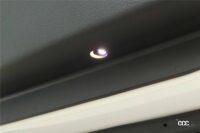 ドア内張りの化粧パネル部のアンビエントランプはアームレストを、左マップランプに埋め込まれたオーバーヘッドコンソールLEDダウンライトがシフトレバー周辺を、夜の室内の一部をほのかに照らします。各席の足元にも照明がありますが(フットランプ)、ここではその一部をお見せします。