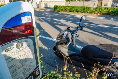 バイクが利用する場合も駐車枠内に駐めるのはクルマと同じ。料金もクルマと同じで、1時間300円です。ただし、パーキング・メーターがちゃんとバイクを感知できる場所に駐めないといけません。