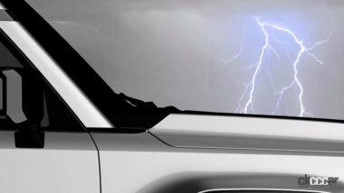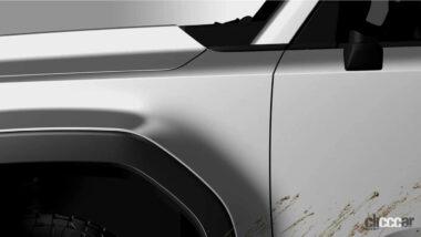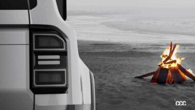 側面では、四角い大型のサイドミラーを装着、大きなウインドウ、頑丈なルーフラックが見てとれます。リアエンドでは、スクエアなウインドウを備えた大型なハッチバックが確認できるほか、ティザーイメージでも発覚したとおり、LEDテールライトはブロック状で構成されています。