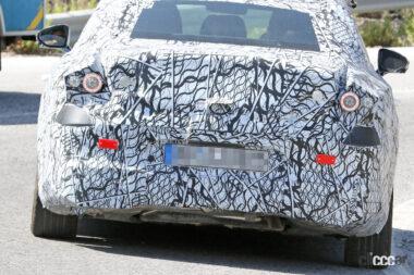 またリアバンパー下部をズームすると、向かって右側に1本の排気パイプが路面に向かって出ており、煙が出ることも確認されていることから、CLA内燃機関が次世代モデルでも生き続けることがわかりました。