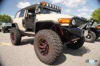 ブラックレタータイヤに白いホイールが可愛く、存在感のあるシュノーケルも圧巻でした。また、先にOPEN COUNTRYエリアでご紹介した三菱キャンターと2台同時エントリーとのこと! キャンターは彼氏さん、ラングラーは彼女さんが運転してきたそうで、来る途中、女のコがこのラングラーを運転していることに周りの方も驚いたようで、かなり目立っていたそうです。私ももし近くで走っていたら、とても気になって見てしまうかも(笑)。彼女さん超かっこいいです♪