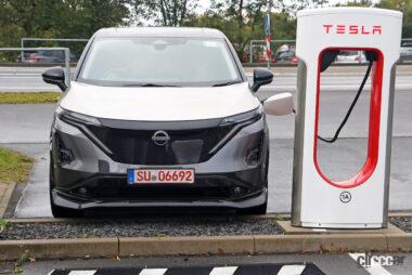 日産「アリアNISMO」市販型をテスラ充電ステーションで激写! e-4ORCE全輪駆動で最大500馬力の噂も