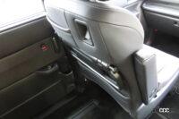 ノア/ヴォクシーは座面下レバーを引っ張るとフロアの足がフリーになり、ばね仕掛けで軽々サイドに起こすと同時に脚も自動で引っ込みますが、格納(といっていいものか)後はクオーターガラスをふさいでしまい、昭和時代のライトエース/タウンエースから進歩していません。