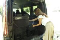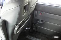 セレナも操作が簡便とはいえず、ロックを外したら脚の格納はマニュアル操作、シート本体をサイドに向けて起こした後はベルトによる固定操作が待っています。格納(といっていいものか)後のシート位置はノア/ヴォクシーより低いものの、クオーターガラス下部とのラップを免れ切れていないのと、たたんだ後の姿がノア/ヴォクシーより分厚いため、荷室幅をかなり狭めています。全体的に荷室の使用性はセレナが3車中いちばんどっちつかずで中途半端。