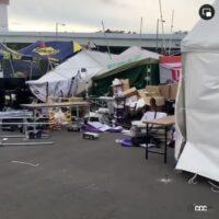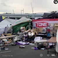 初日の11日早朝にスマホでふと見た、元祖爆笑ドリフトキング・URAS(ユーラス)・野村謙さんのSNSで、前日に搬入・設置された会場内が、被災地のような現場になっているではないですか!