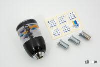 このトラストGReddy水中花シフトノブ。サイズは縦(長さ)75×横45mm、重さは約157g、価格はシフトノブ本体/ネジアダプター3種/シフトパターンステッカー5種のセットで1万1880円(税込)。