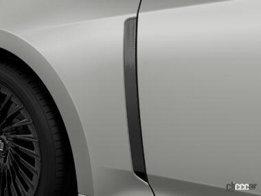 「これも『革新と挑戦』ですね。リアフェンダー部も含め、ここまでベルトラインを水平に伸ばそうとすると、通常はフューエルリッドが邪魔してしまうのですが、今回は燃料パイプの経路を見直すことで実現しました。これによって、リアビューでのキャビンとタイヤの関係にスタンスの良さが生まれるんです。また、縦型のグリルやフェンダーガーニッシュを組み合わせることで、ボディの中に水平と垂直の関係を作っているんです」