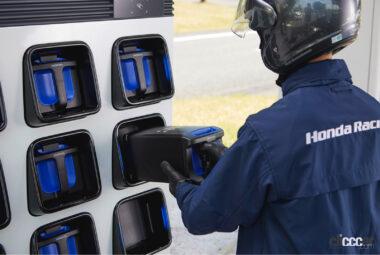 交換できるバッテリーは、前述の通りホンダ モバイルパワーパックe:で、複数のバッテリーを充電可能な「ホンダ モバイルパワーパック エクスチェンジャーe:(Honda Mobile Power Pack Exchanger e:)」をステーションに設置。ユーザーは、そこにある充電済みバッテリーと残量が減ったバッテリーを交換することで、充電時間の短縮などができるというものです。