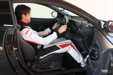 「普通、サーキットでのスポーツ走行だと4点式以上のシートベルトをしてガッチガチに身体を固定する場合が多いじゃないですか。すると、ちょっと離れたスイッチ類を押したくても手が届かない。普通の3点式シートベルトでも肩をシートから離して、腕をかなり伸ばしてスイッチを押す…そんな動作が必要になるときってあるじゃない。でも、この進化したGRヤリスは、シートに座ったそのままの姿勢で、普通に各種スイッチに手が届くんです」(井出)。