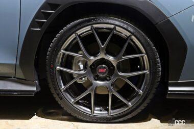 トピックは、何といっても前後で異なる形状となるSTI製フレキシブルパフォーマンスホイールですが、このホイールはBBS製の19インチ鍛造ホイールで、ステアリング操舵時の応答性を高めるまったく新しいアイテムです。