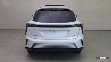 中国「MIIT」(中国工業情報化部)が公開した東風汽車バージョンの市販型「e:NS2」は、各前輪の前に垂直に取り付けられたブーメラン型のLEDデイタイムランニングライトを装備。後部では地面に向かって下がる全幅のLEDテールライトバーと、トランクパネルに「Honda」の文字が付いています。