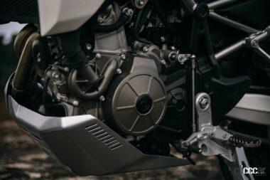 これにより、低速域から扱いやすく、中〜高速域での心地よい加速感も実現。車両重量204kgという軽い車体と相まって、オンロードからオフロードまで幅広いシーンで走りを楽しめるバイクに仕上がっているといいます。