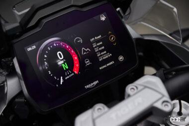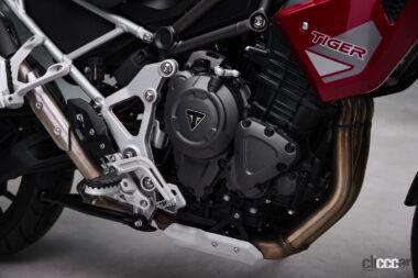 ほかにも、オンロード系のタイガー1200GTプロとタイガー1200GTエクスプローラーでは、フットペグも変更。位置を引き上げることで、コーナリング時のバンク角をより深くとることを可能としています。