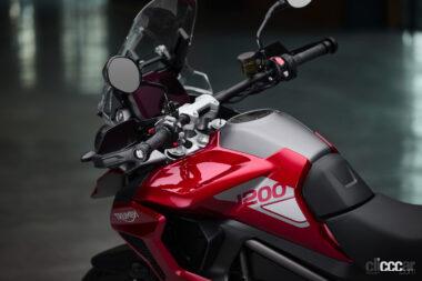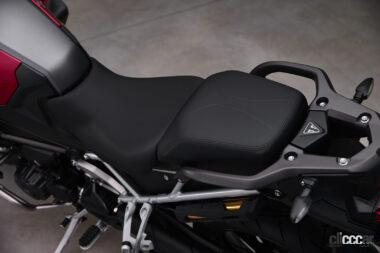 その新型では、独自のTプレーン・クランクを採用した1160cc・3気筒エンジンをアップデート。低回転域からよりスムーズにトルクが発生する特性とするなどで、扱いやすさを向上させたほか、シート形状などの改善などで、より長距離ツーリングでの快適性をアップさせていることがポイントです。