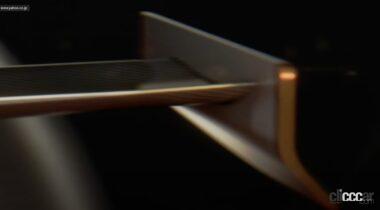 ティザームービーでは、大型リアウイングに焦点を当てています。ウイングはカーボンファイバー製で、側面にはゴールドのアクセントがあり、中央の膨らみにつながっています。