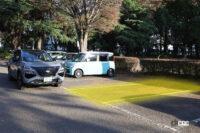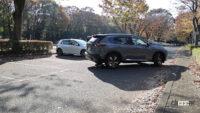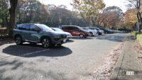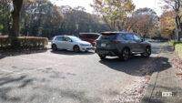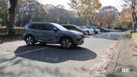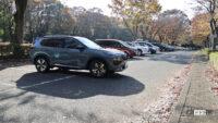 いつもと同じく、試乗に撮影、記事書きに画像加工、すべてをひとりで行っていて、実践は外で確認してくれるひとがいないため、間違いが起きないよう、両脇にクルマがない3台スペースの中の真ん中を使いましたが、実感からすると、満車に近い駐車場で、運よくやっと見つけた、たった1台分のスペースにも正確に入ってくれそうな仕上がりでした。