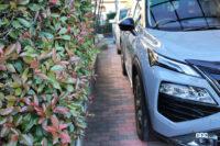 周囲の段差とドアorタイヤ、ドアミラーと生垣orフェンスなど、運転席から見るとぶつかっているように見えるのです。これは車両サイズと車庫事情の相性なので、エクストレイルが悪いのではないし、いずれは慣れが解決するのですが、エクストレイルおよび似たようなサイズのクルマを買う際は、頭から入れざるを得ない車庫をお持ちの方は、クルマを買うお店のひとによく事情を話し、店舗試乗車を自宅車庫に持ち込んで確認するのが得策です。