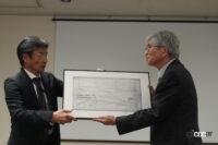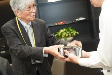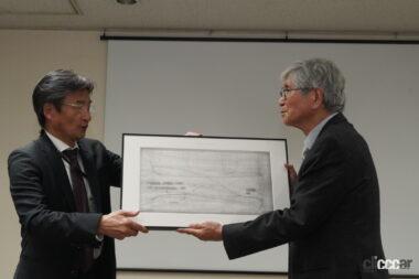 マツダからは、額装されたコスモスポーツの設計図のコピーが山京さんへプレゼントされました。