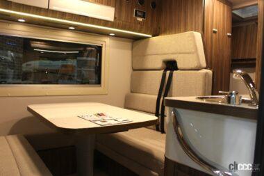 全長約5m、全幅約2mという扱いやすいボディサイズでありながら、広大なダイネットは、大人2人が就寝できるフルフラットのフロアベッド、リヤ常設ベッド(上段に大人1人、下段に小柄な人や子ども1人)が用意されています。