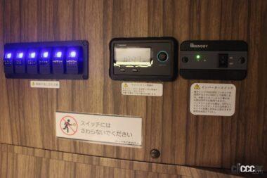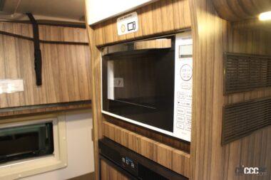 主な装備は、電子レンジやパーキングクーラー(12V)などをまかなうリチウムイオン電池、高音質スピーカー、15.6インチのフリップダウンモニター、大型ダストボックス、などが用意され、家族で車中泊をしながら観光や温泉巡りなどをするニーズに応えてくれます。