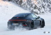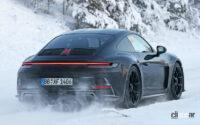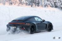 豪雪のフィンランド山中で捉えたプロトタイプは、GT3のフードベント、中央には大型エアインテークを備えた、ボックス型のバンパー、スラッシュカットのカーボンドア、RS同様のフロントフェンダー、足回りにはセンターロックホイールが装着されています。