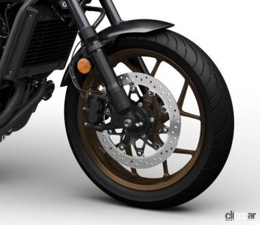 レブル1100は、フレームをマットブラックにすることで、タフなイメージをアップ。燃料タンクなどにグレーを配色した「イリジウムグレーメタリック」を設定するほか、レブル1100Tと共通の「ガンメタルブラックメタリック」も用意(レブル1100Tは1色設定)。このカラーでは両モデル共に、ホイール色をブロンズとすることで、高級感と落ち着いた印象を表現していることも魅力です。